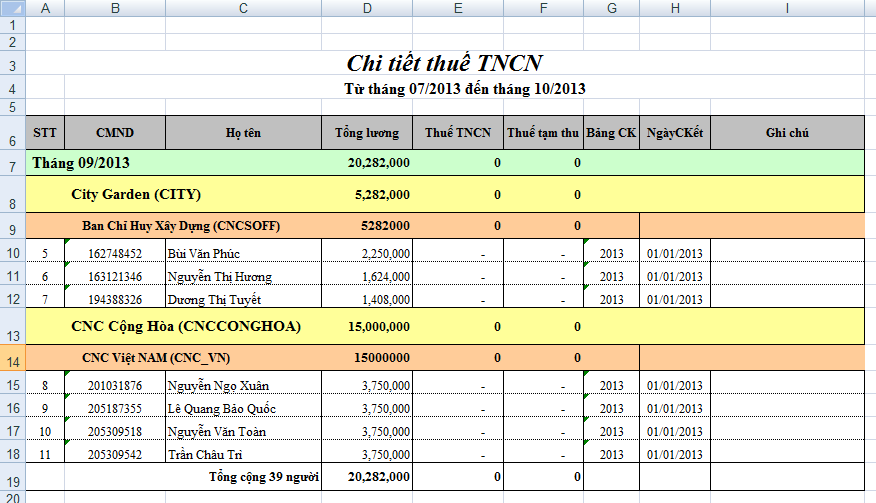 - Tổng hợp tiền lương, tiền công 6 tháng đầu.